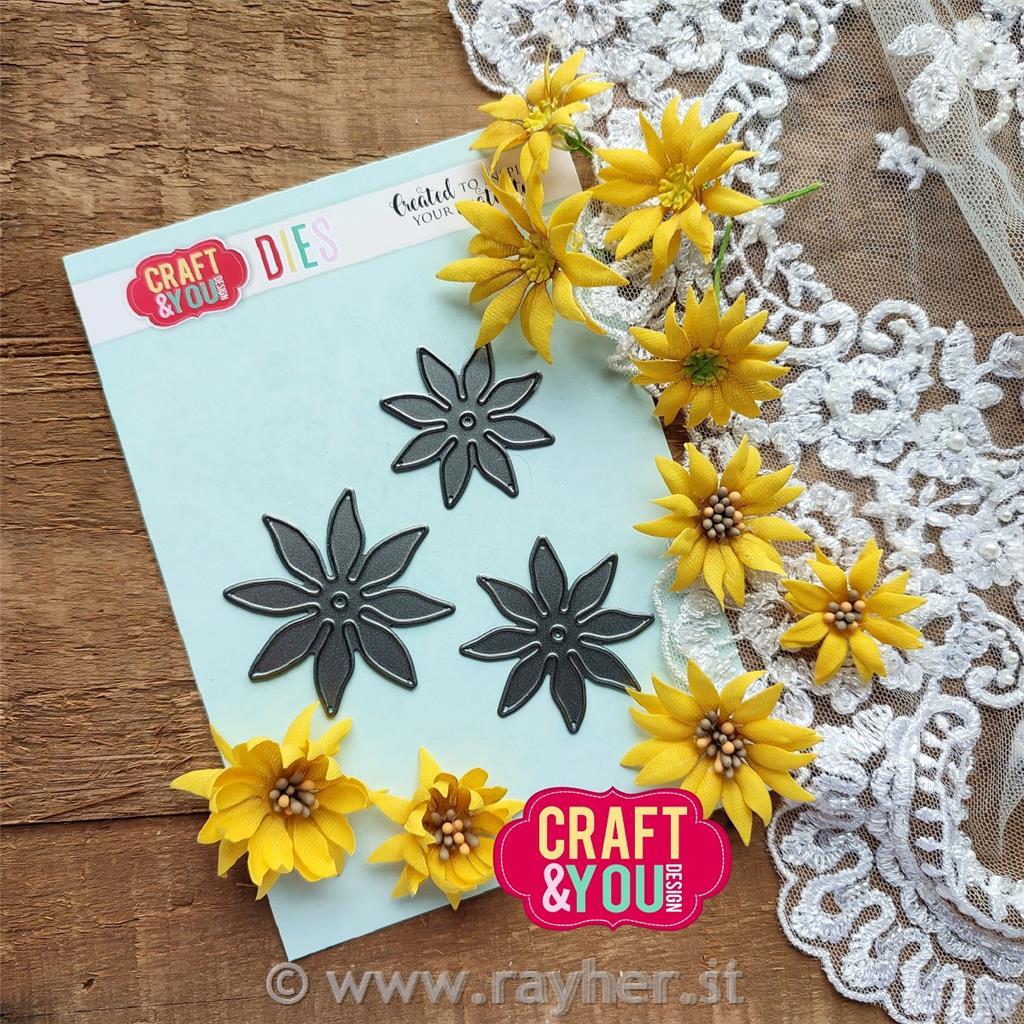 V paketu so tri rezalne šablone s katerimi izdelate cvet sončnice.