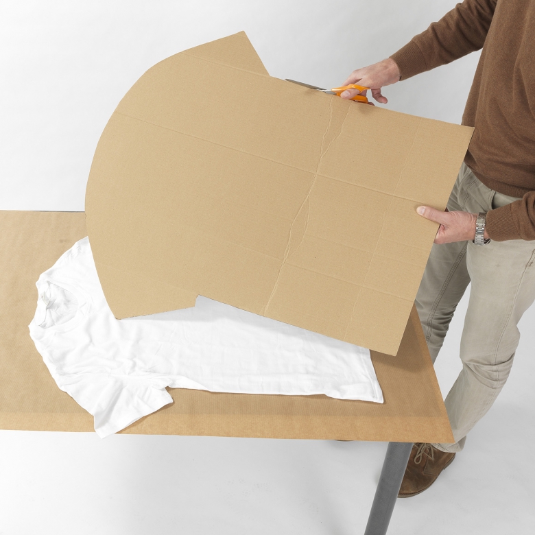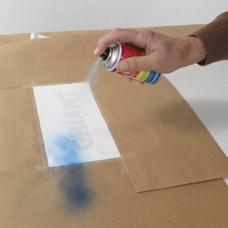 GHIANT H2O je barva za tekstil na vodni osnovi v razpršilu. Pred nanosom je priporočeno, da tekstil, na katerega bomo barvo nanesli, operemo brez mehčalca.Majico napnemo na osnovo iz kartona.