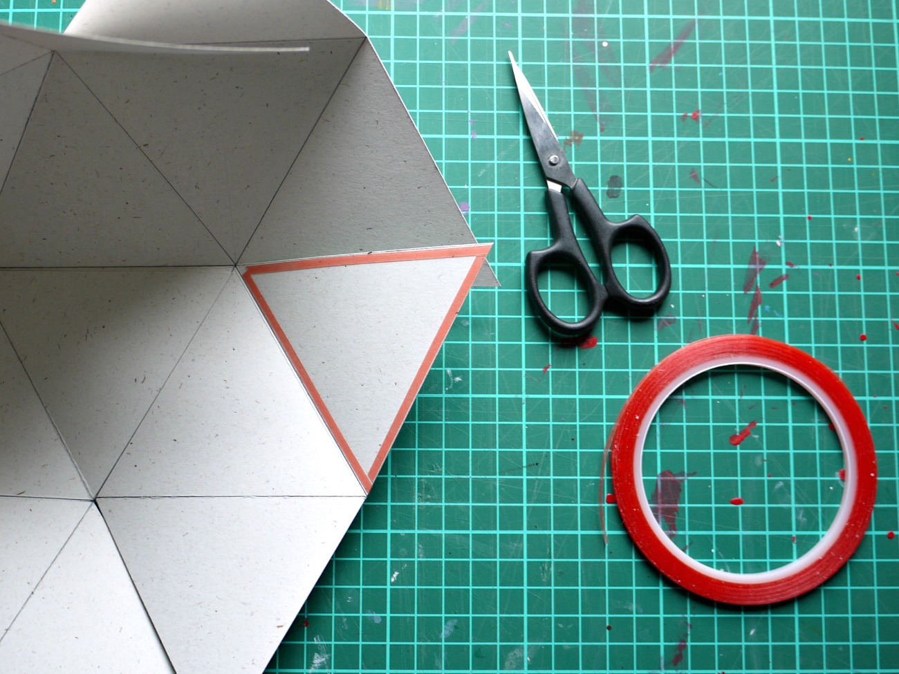 Z dvostranskim samolepilnim trakom šablono sestavimo v celoto kot kaže slika.