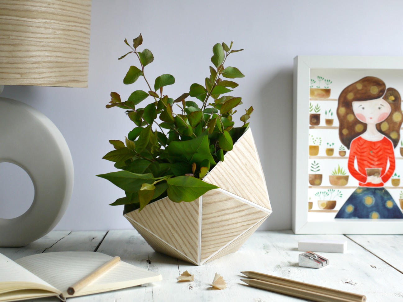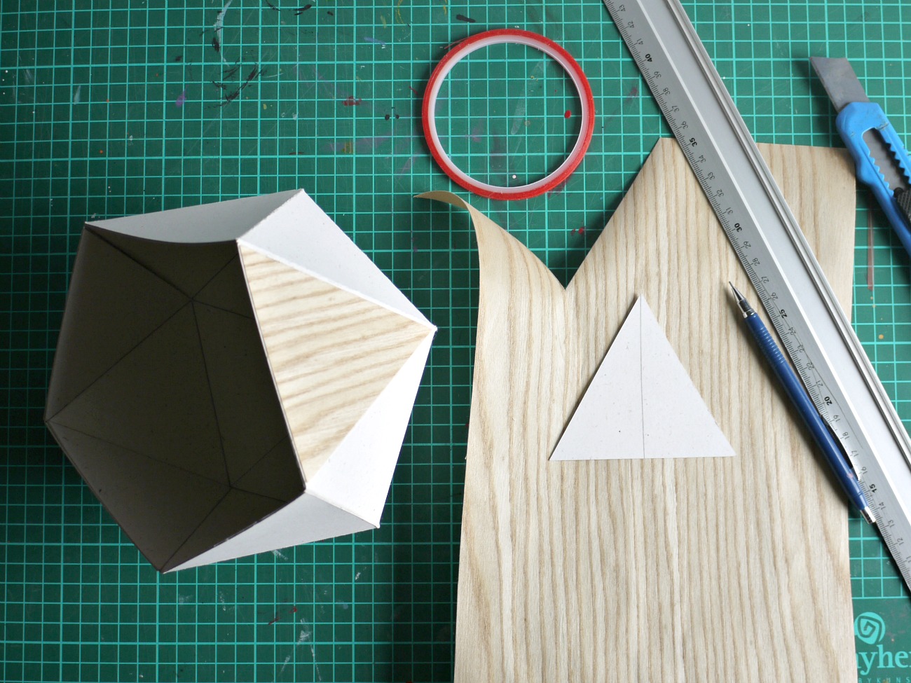 Iz tkanine s furnirjem izrežemo trikotnike, ki so 1-2mm manjši kot na šabloni in jih prilepimo