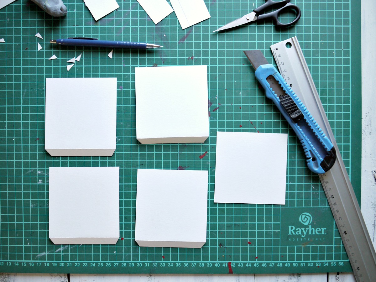 Iz akvarelnega papirja narežemo osnove za izdelavo škatlice.