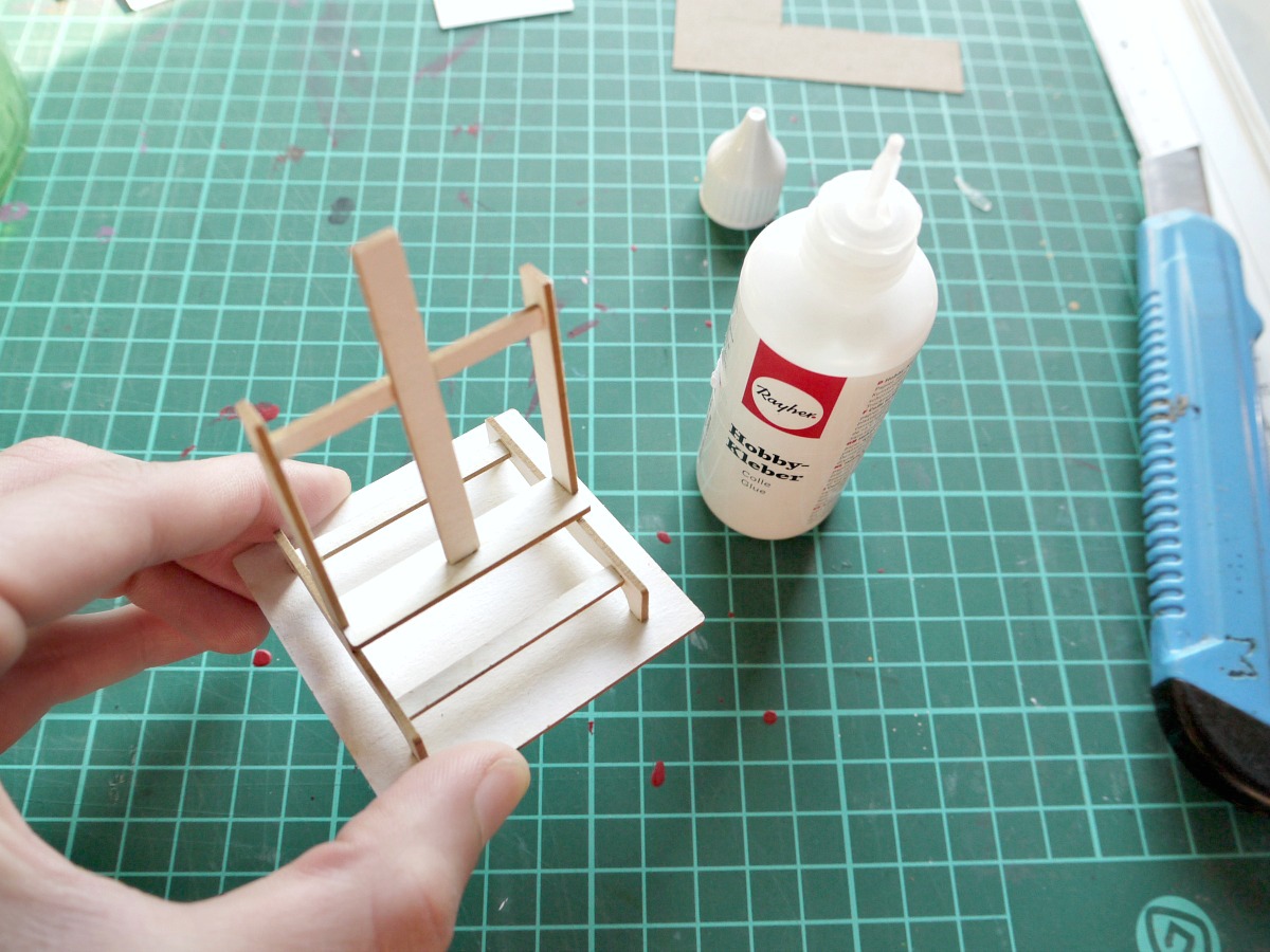 Medtem, ko čakamo, da se barva posuši, sestavimo in zalepimo slikarsko stojalo.
