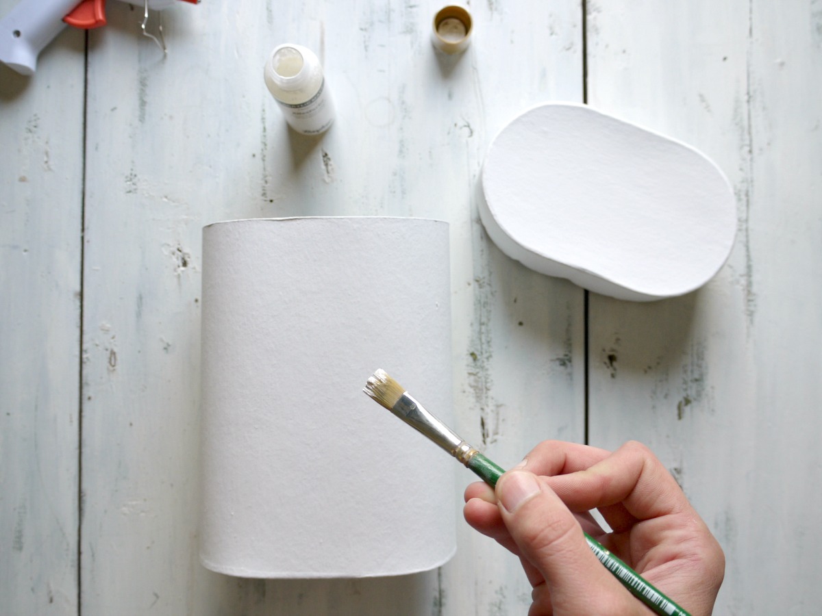 Škatlo najprej 2 x prebarvamo z belo akrilno barvo.