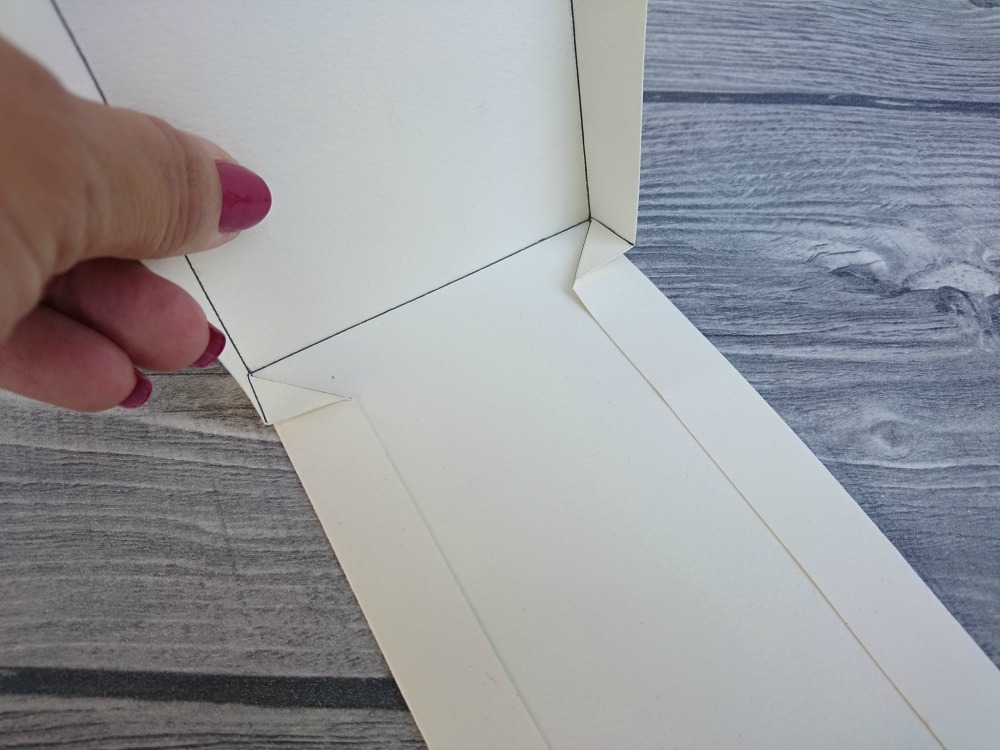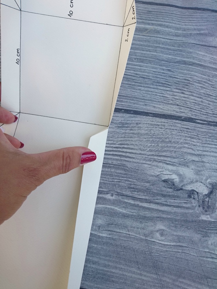 Robove zapognemo proti notranjosti in jih zalepimo. To ponovimo na vseh štirih stranicah.