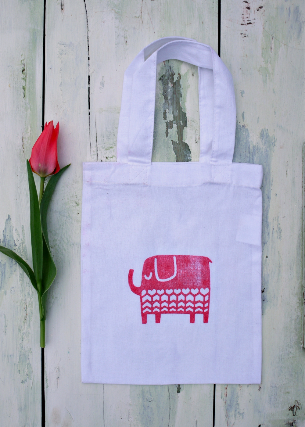 Motiv potapkamo z barvno blazinico in odtisnemo na želeno mesto na tekstilu. Počakamo nekaj minut in motiv polikamo po hrbtni strani, da utrdimo barvo.