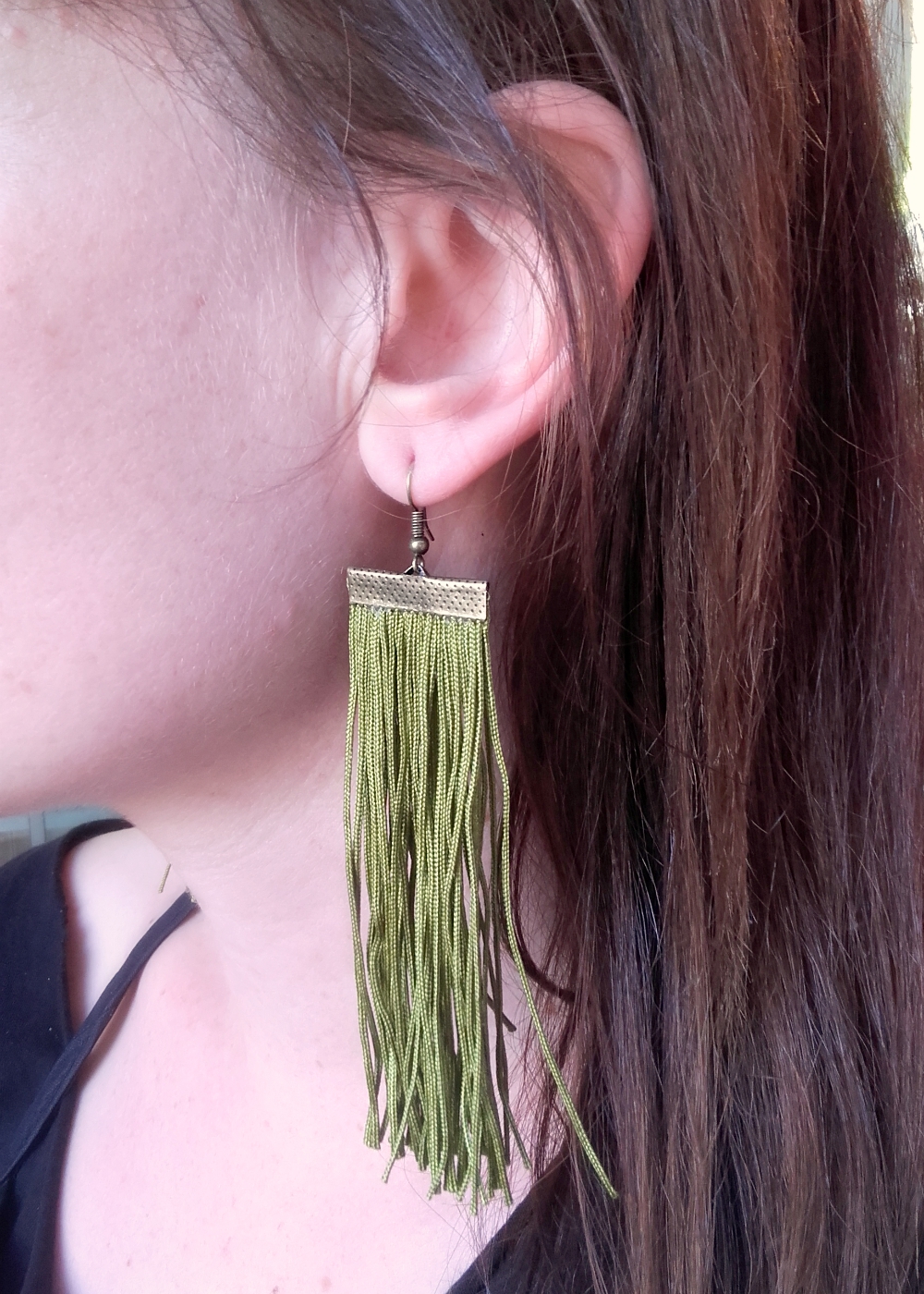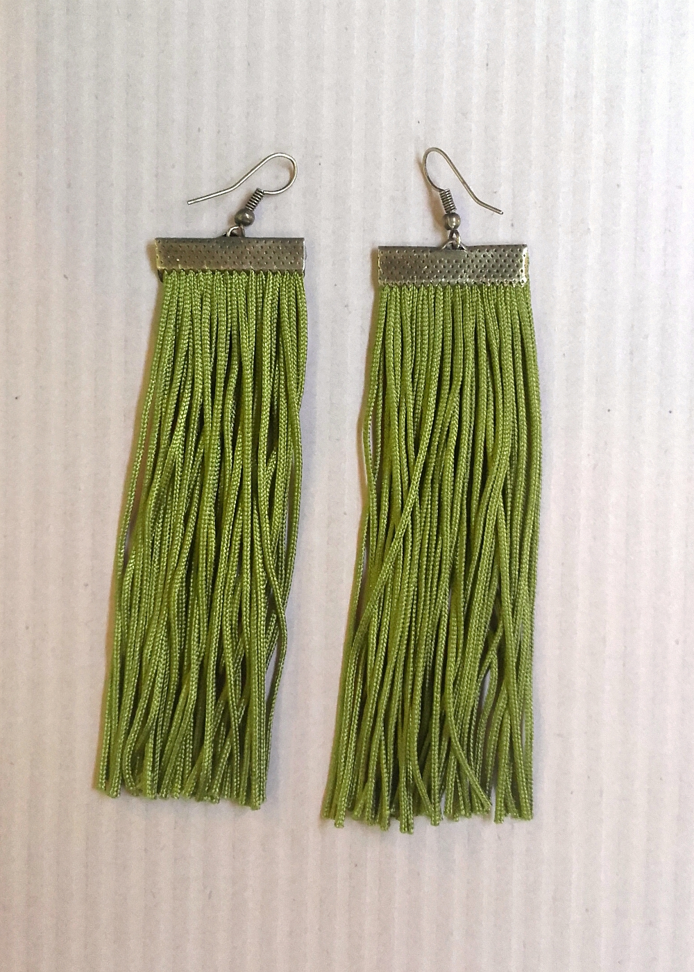 V zaključek nanesemo malo lepila in ga položimo na vrvico. Zaključek stisnemo s kleščami do te mere, da lahko odstranimo lepenko. Nato ga popolnoma stisnemo in dodamo še osnove za viseče uhane.