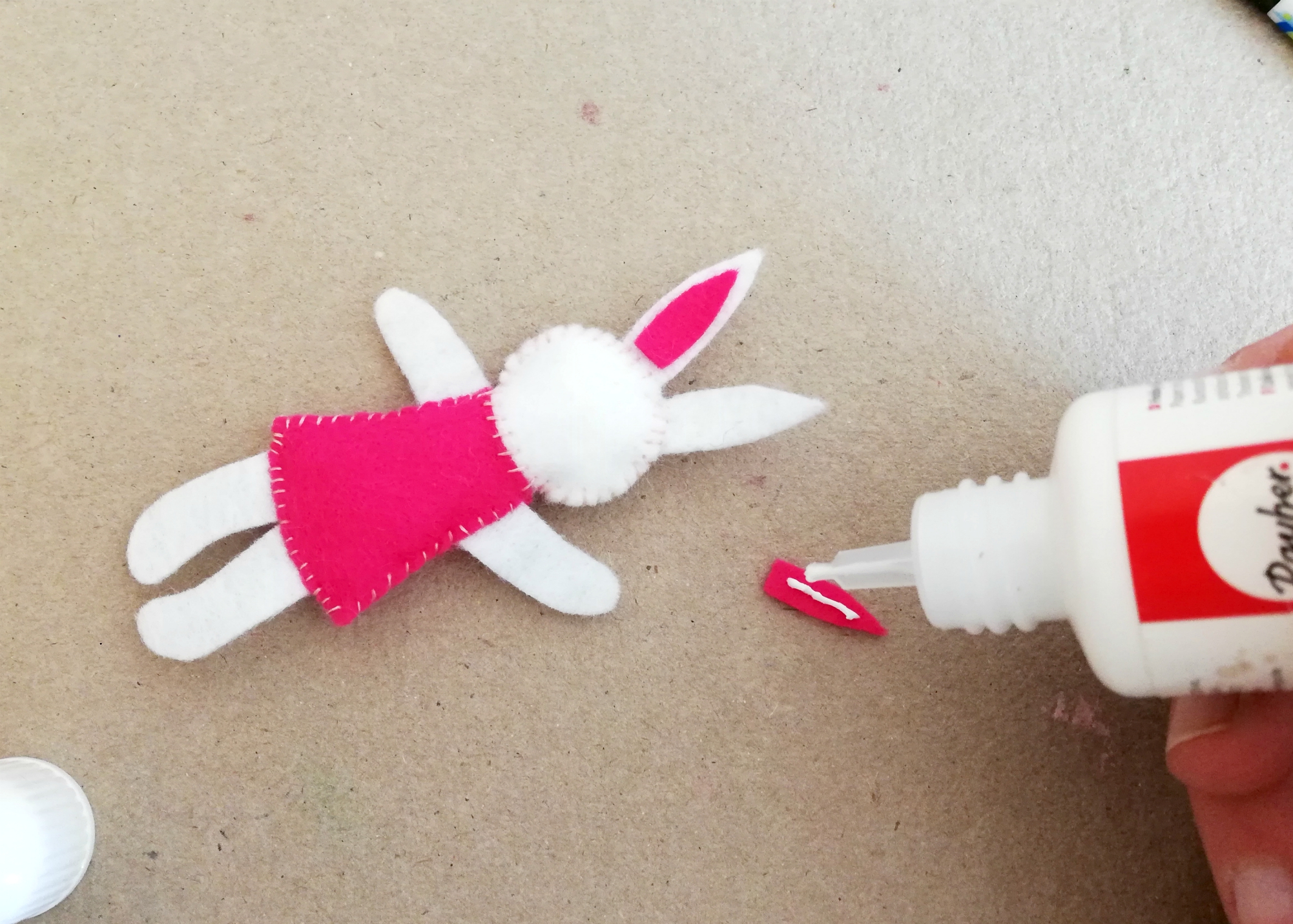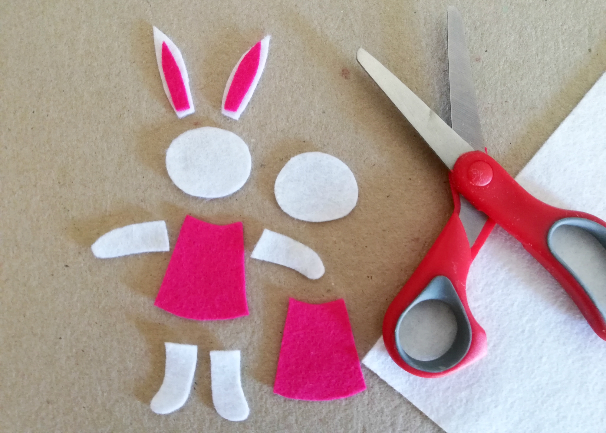 1. Na filc s svinčnikom naredimo obris živalice in delčke izrežemo.
