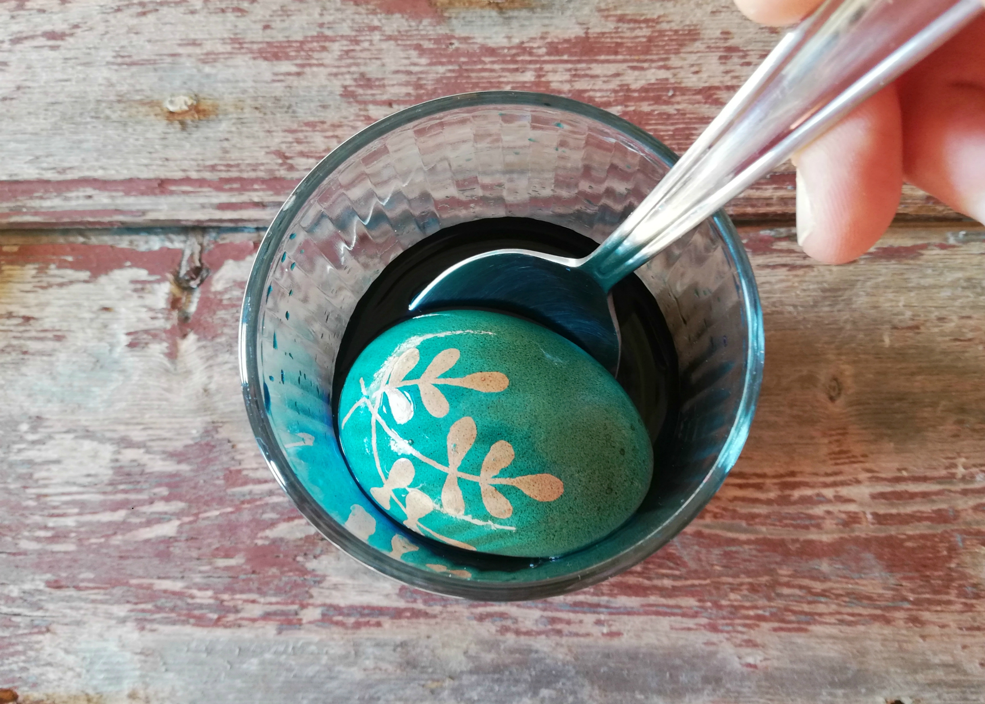 3. Jajce pomočimo v barvo, pripravljeno po navodilih na vrečki.
