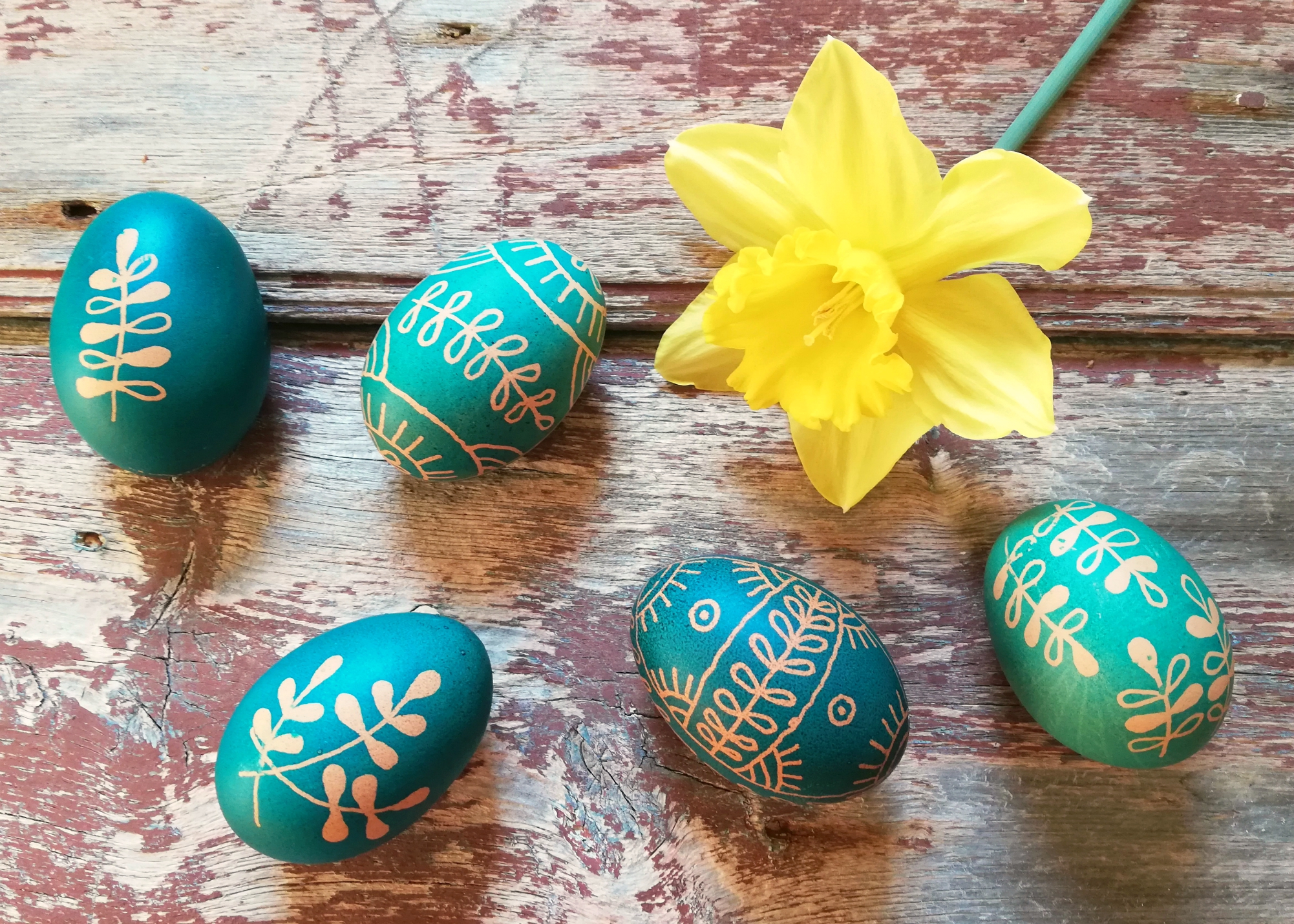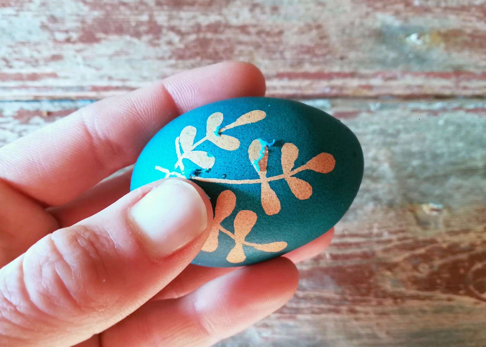 2. S flomastrom na trdo kuhano jajce narišemo poljuben vzorec. Počakamo, da se vzorec dobro posuši, na površini se ustvari prozoren zaščitni film.