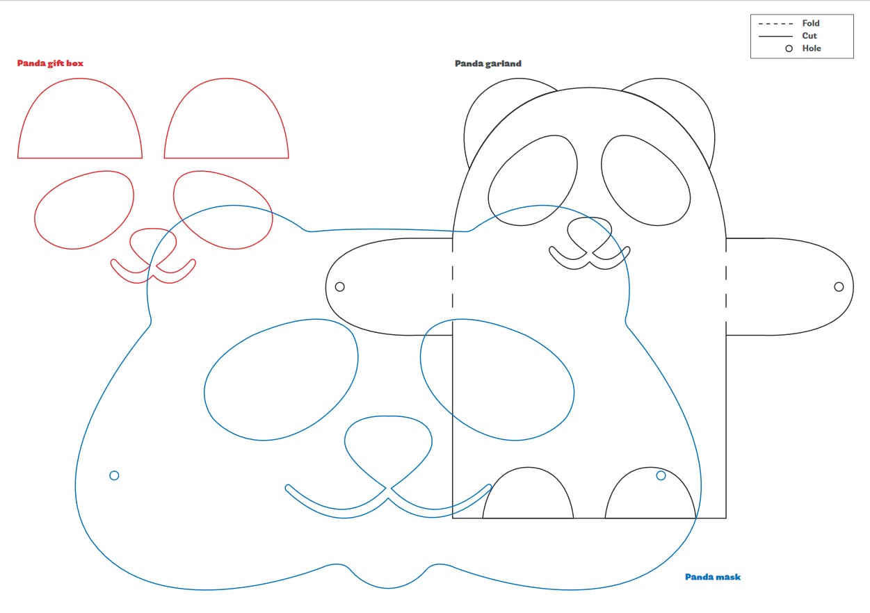 Na bel karton prekopiramo obrise oči, ušes in gobčka ter jih prebarvamo s črno barvo. Vse dele izrežemo in jih prilepimo na belo kartonasto škatlico. Prilepimo še plastične oči in darilna embalaža je pripravljena.