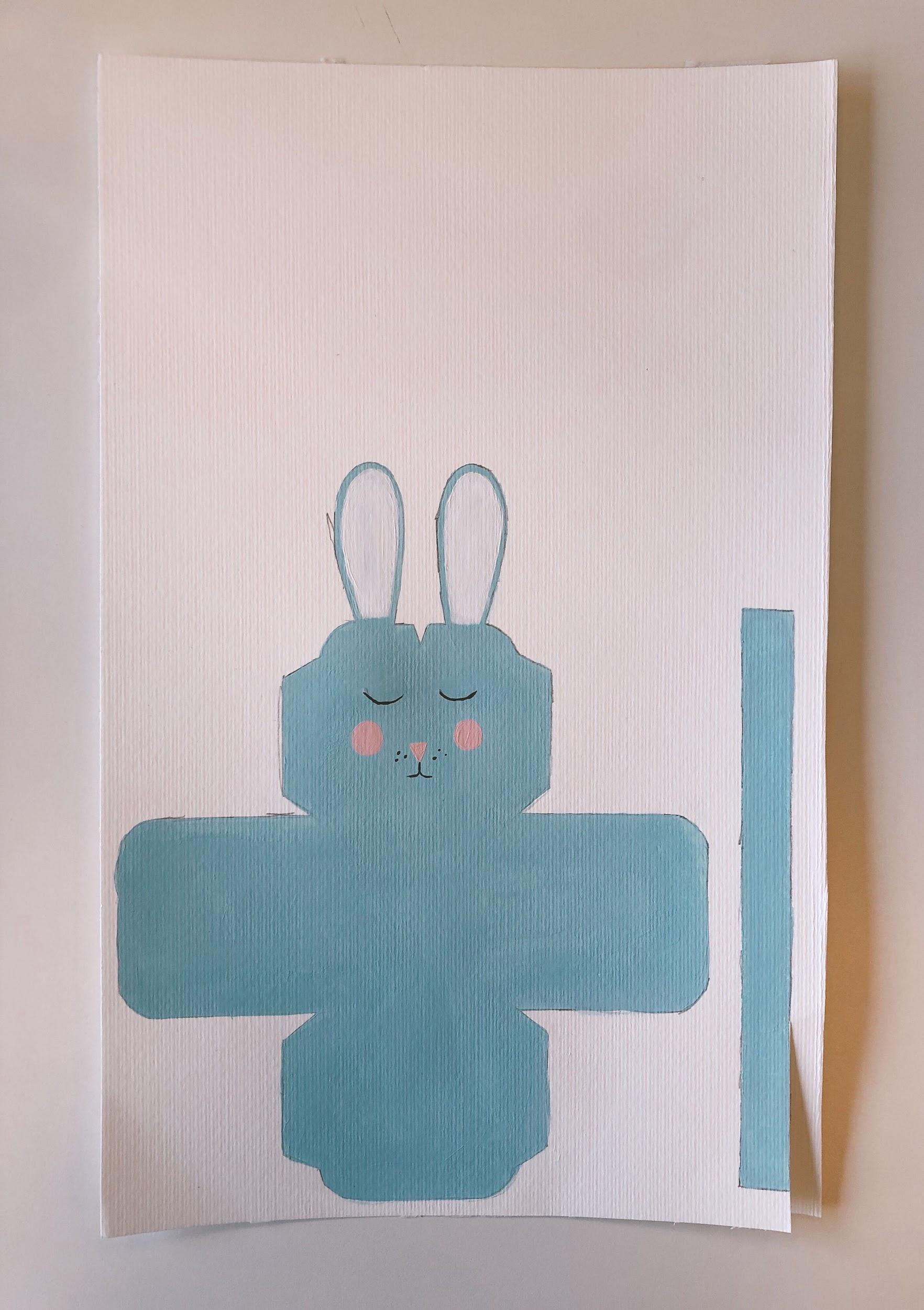 Sedaj je čas za zabavo - barvanje! Mi smo uporabili akrilne barve. Za zajčka smo izbrali svetlo modro barvo. Ta del je za otroke posebej zabaven, zato jih pri ustvarjanju ne omejujte, naj sami izberejo barve in ustvarijo svojega zajčka.