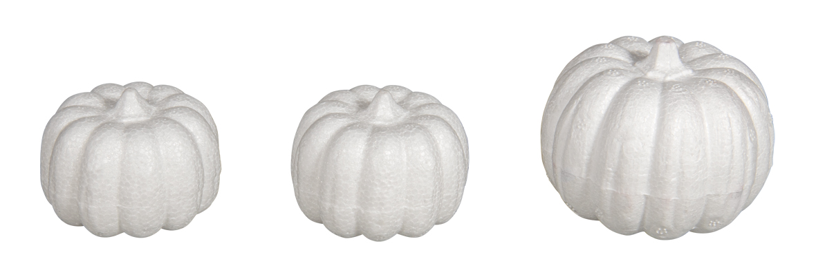 Korak 1Najprej z belo akrilno barvo pobarvajte celotno površino buč iz stiropora. Pomagate si lahko tako, da vsako nabodete na leseno nabodalo, tako da lahko pobarvate celotno površino naenkrat. Nabodala z bučami postavite v stekleno vazo, da se posušijo.