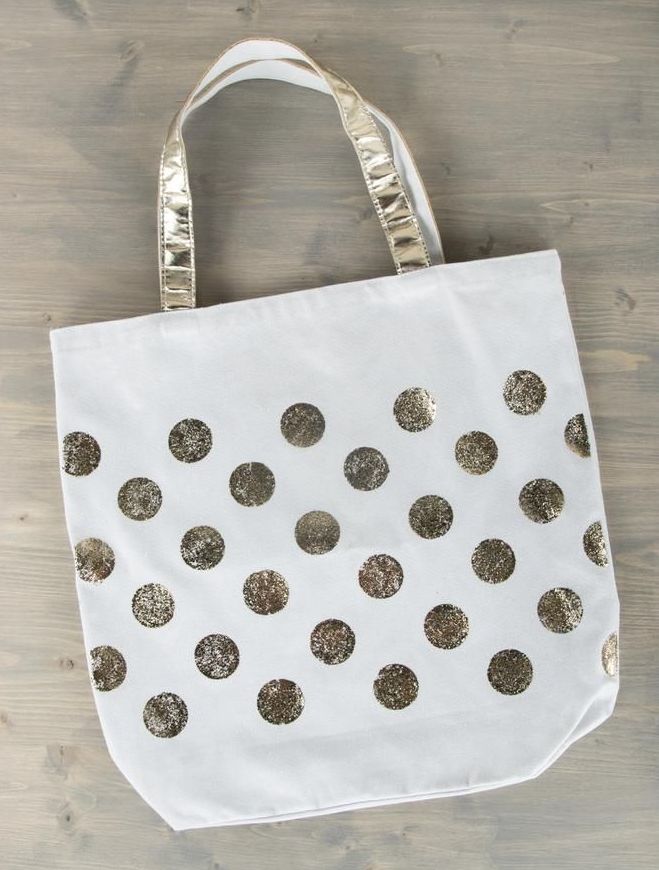 Položite šablono na nakupovalno vrečko v vzorcu, ki ga želite. Lahko uporabite poljubne šablone. Mi smo uporabili šablono s pikami.