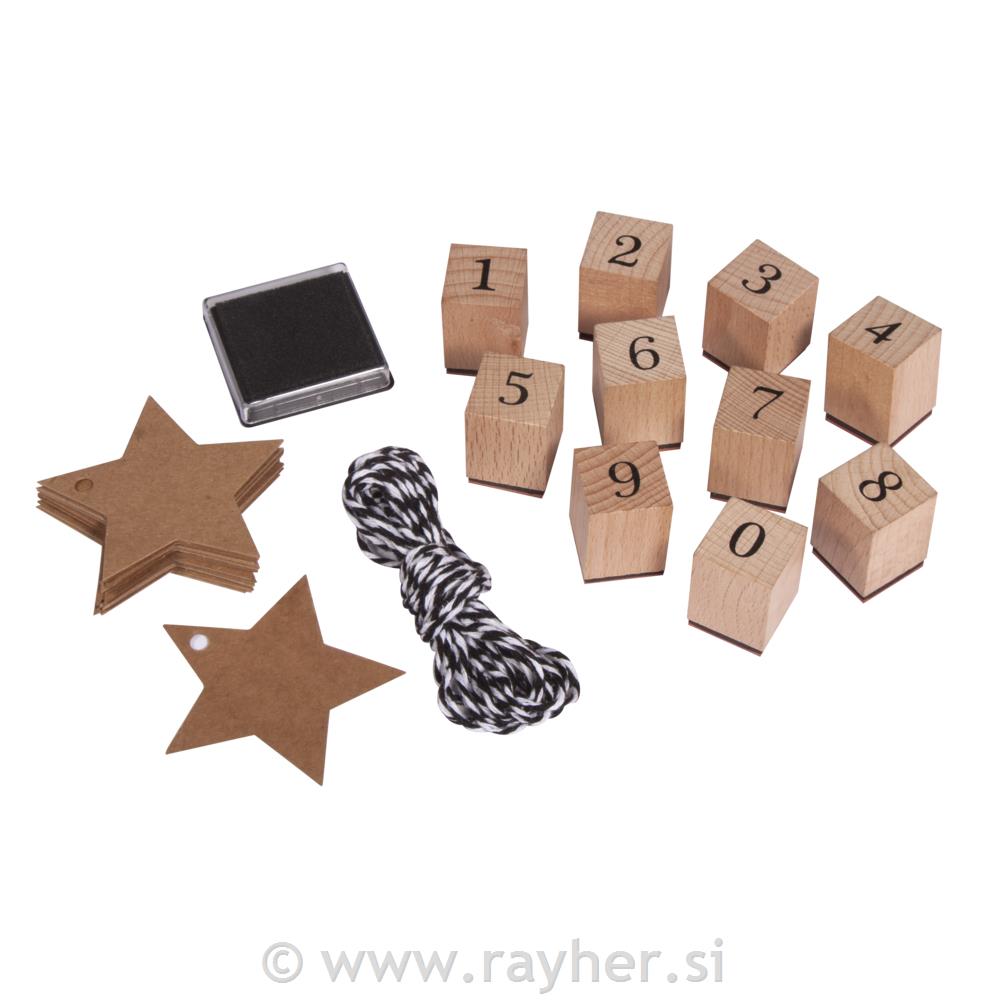 Vzamemo set štampiljk številke, ter odtisnemo 24 kartončkov, vsakega za en dan, do Božiča.