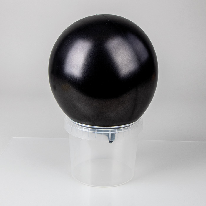 Korak 1Napihnite balon in ga tesno zavežite, da ne uhaja zrak. Balon z vozlom navzdol varno položite na primerno posodo.