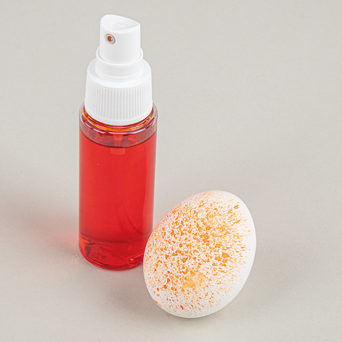 Pripravljeno barvo napolnite v stekleničko z razpršilom in jo po želji razpršite na jajce (na razdalji približno 15-20 cm). Priporočamo, da najprej razpršite vzorec na kos papirja.