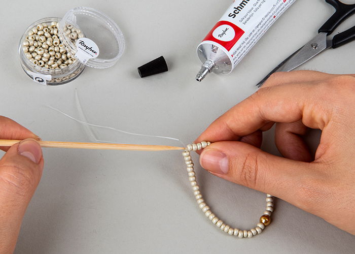 Z lesenim nabodalom na katerega nanesete lepilo za nakit, pritrdite vozel.