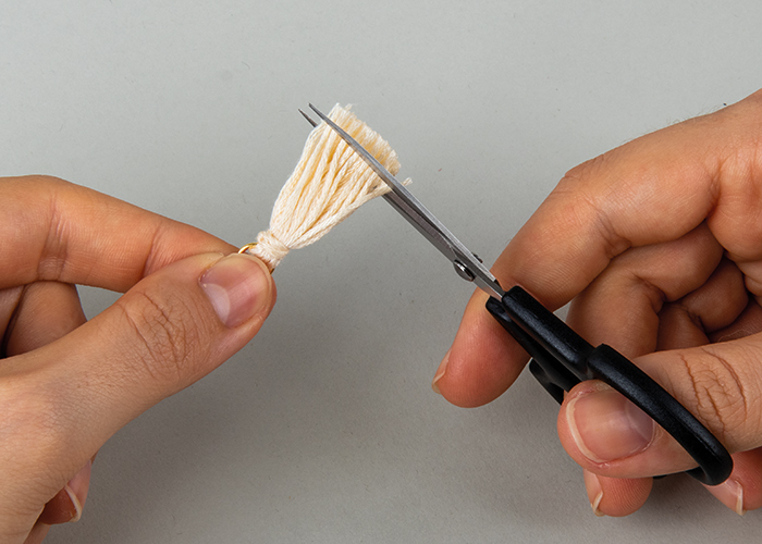 Z iglo za perlice skrijte oba konca preje v jedro šopka.