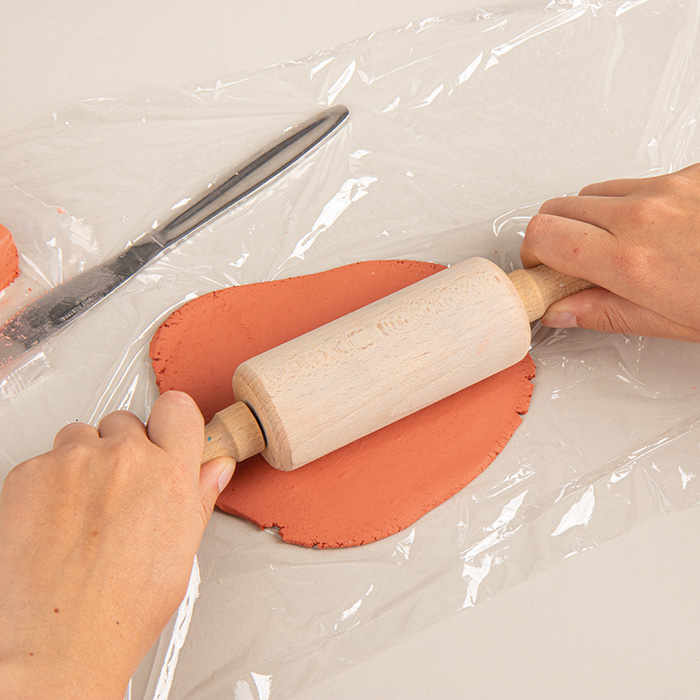 Korak 1Z nožem odrežite kos modelirne mase in ga razvaljajte na debelino približno 5 mm.