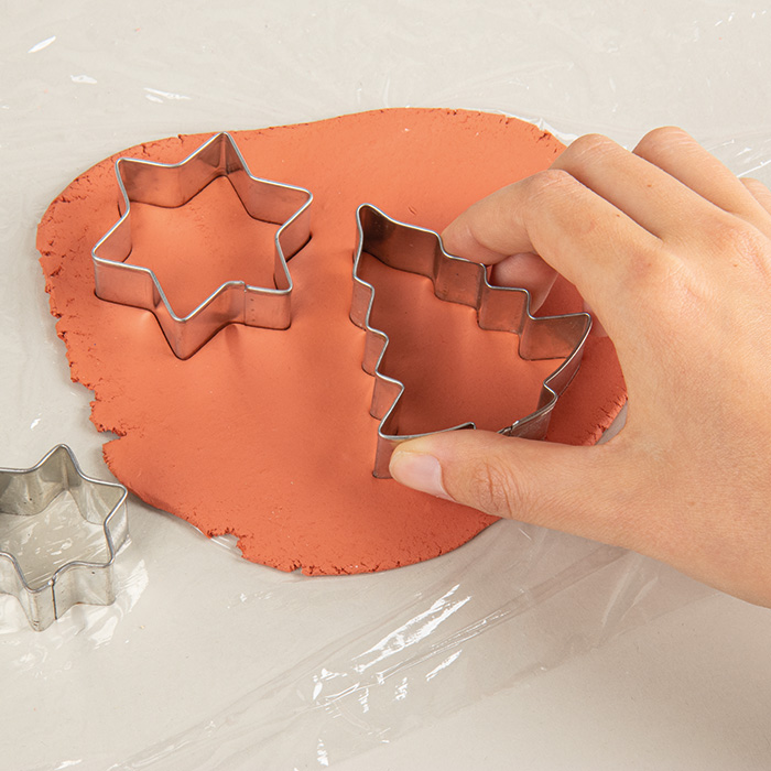 Tako kot pri piškotih izrežite željene motive, na primer zvezdice in jelke.