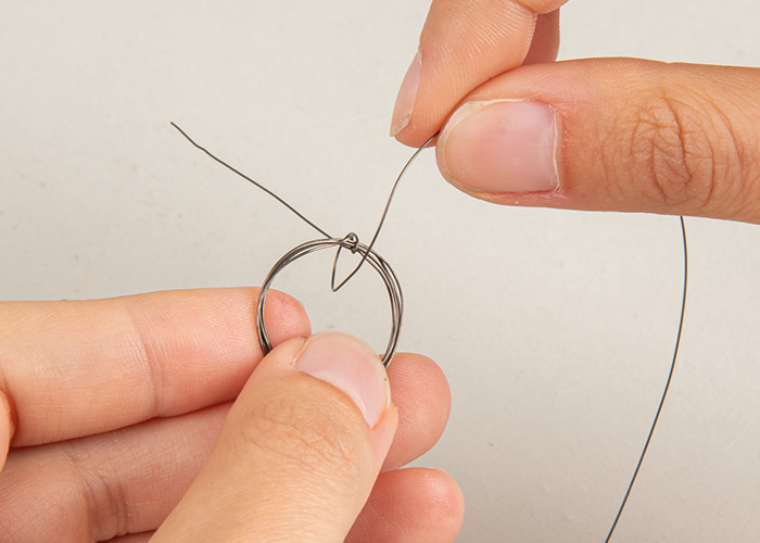 Po približno 4 cm žico upognite v obroč (premera približno 2 cm). S še štirimi obročki je avreola videti čudovita.