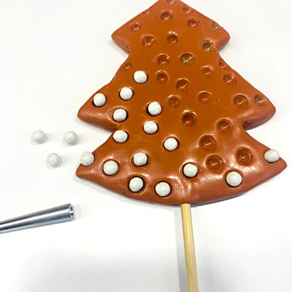 Na sredinsko obliko položite leseno nabodalo in se odločite, kako dolgo bo deblo. Na sliki je deblo dolgo približno 2 cm.