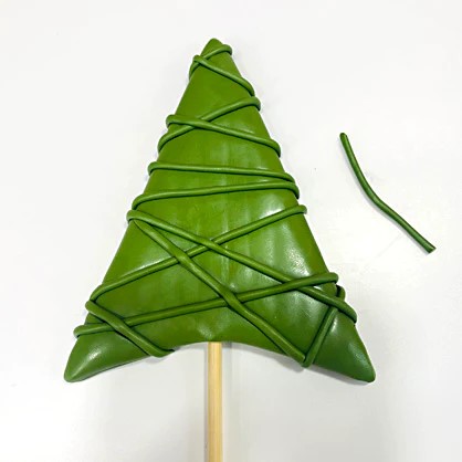 Razvaljajte zelo tanke vrvice v isti barvi mase in jih položite v utore. Odvečno maso obrežite ob robovih. Drevo postavite na stran za peko.