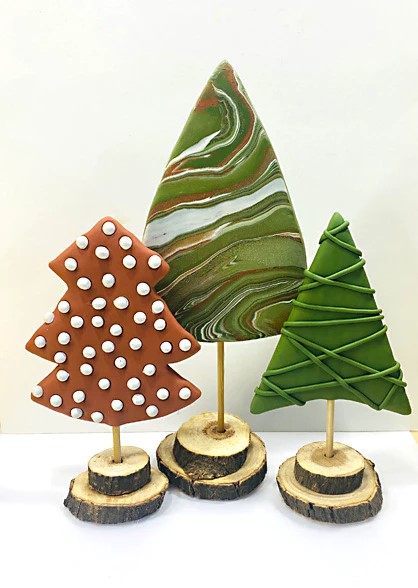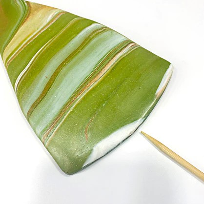 Odločite se, katera stran marmoriranega drevesa vam je najbolj všeč. S konicami prstov poskrbite, da so vsi odrezani robovi gladki. Vsa tri drevesa pecite v skladu z navodili za peko za Sculpey Premo™.