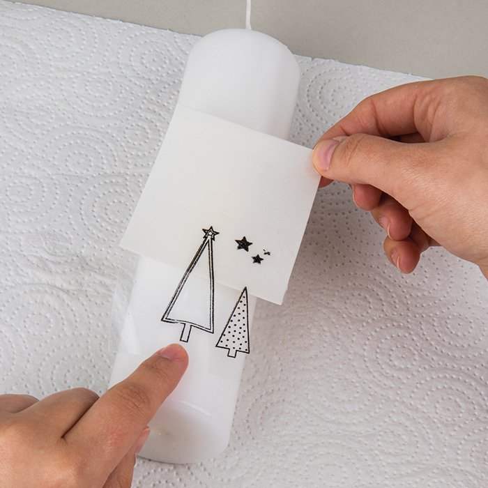 Nato previdno odstranite motiv s podlogo iz vode in ga namestite na svečo.