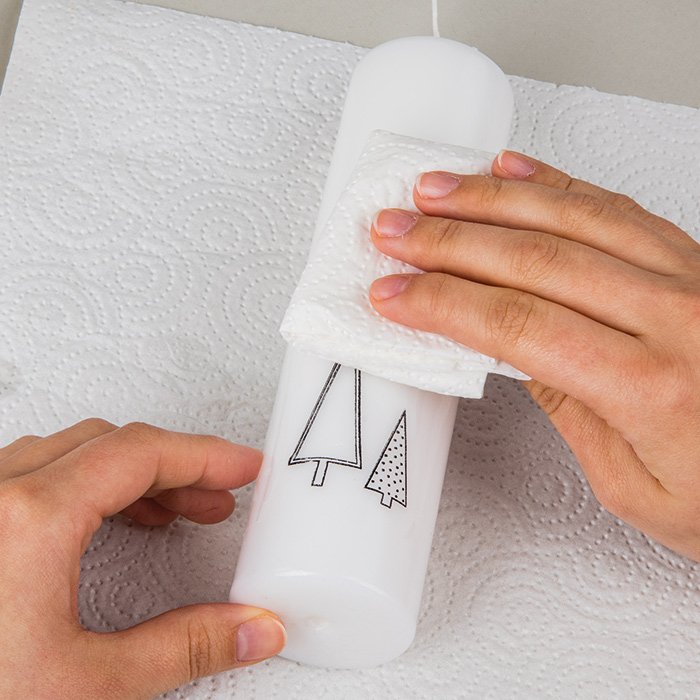 Opozorilo: Sveče NE premažite z lakom za sveče, saj bo ta raztopil in razmazal odtisnjen motiv.