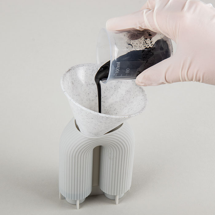 Če želite zgornji del vaze narediti bel, spodnji del pa črn, najprej zmešajte beli Raysin (100 g). Z lijakom vlijte enake dele, pustite, da se posuši, in dolijte črni Raysin (150 g). Pustite, da se ponovno posuši, odstranite kalup in pustite, da se strdi.