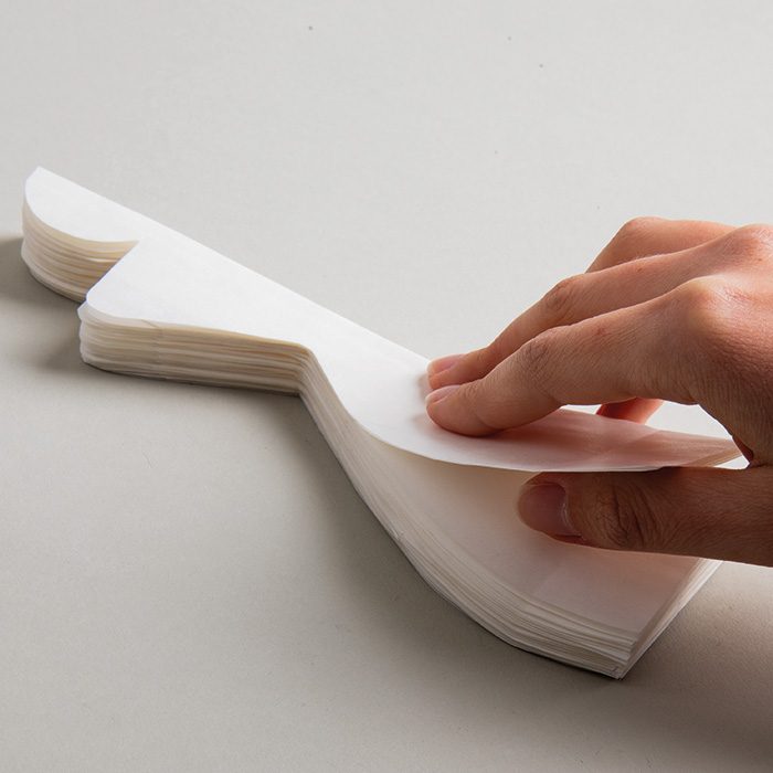 Ob dolgem robu nanesi obojestranski lepilni trak na rob pri 14 izrezih (za velikega angela) in 11 izrezih (za malega angela).