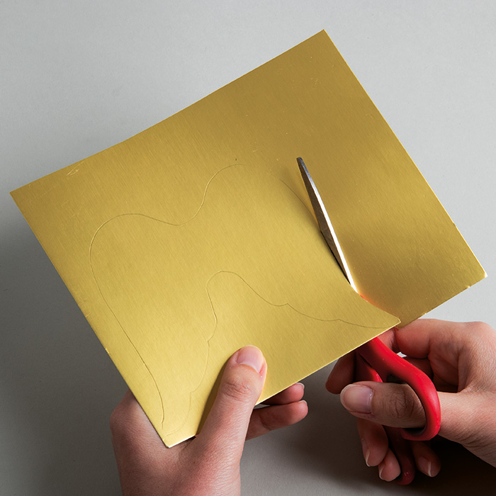 Za krila položi šablono na kos zlat papir ali karton, obriši jo in izreži krila s škarjami.