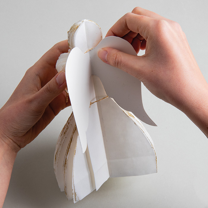 Krila prilepi na zadnjo stran angela z vročo lepilno pištolo.