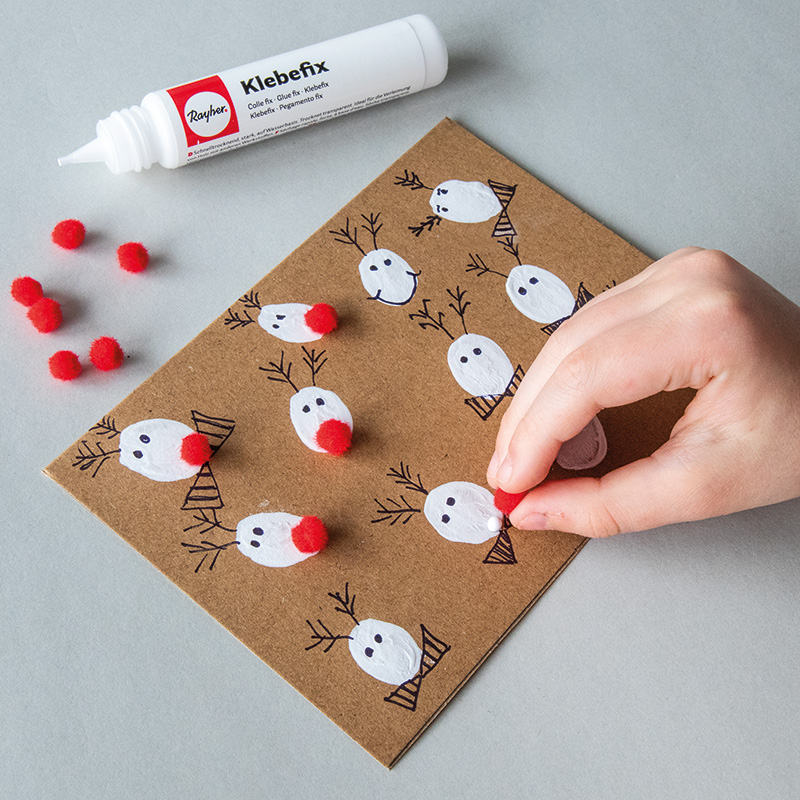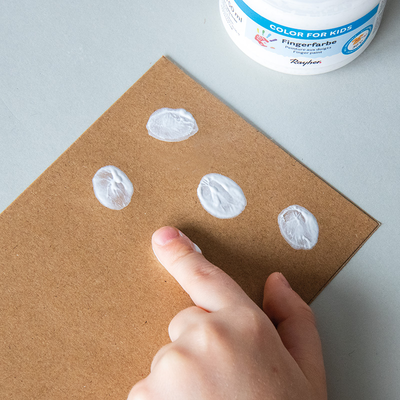 S prstom odtisnite barvo na karton. Ta postopek ponovite po celotni površini kartona. Pustite, da se barva temeljito posuši.