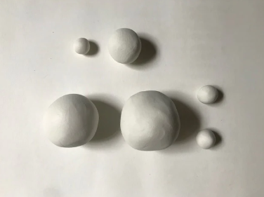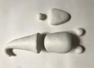 1. Oblikujte kroglice iz gline za vse dele palčka:Klobuk: kroglica premera približno 3,2 cm