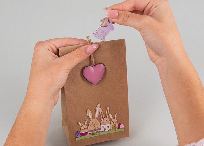 Napolni vrečko in jo zapri z leseno sponko v obliki zajčka.