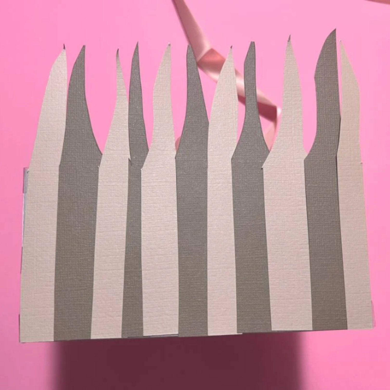 Izrežite po teh črtah, da dobite dve polovici kartona, nato pa posamezna rezila trave ločite z dodatnimi rezi.