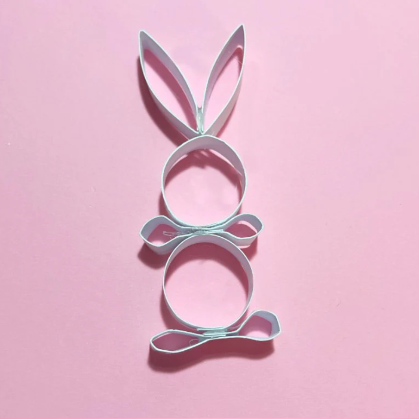 Iz belega kartona izrežite šest trakov velikosti 1,3 cm x 10 cm in jih zvijte v majhne zanke ter sestavite v pentljo.