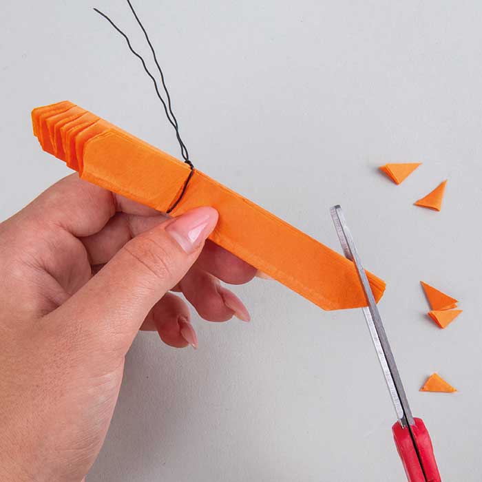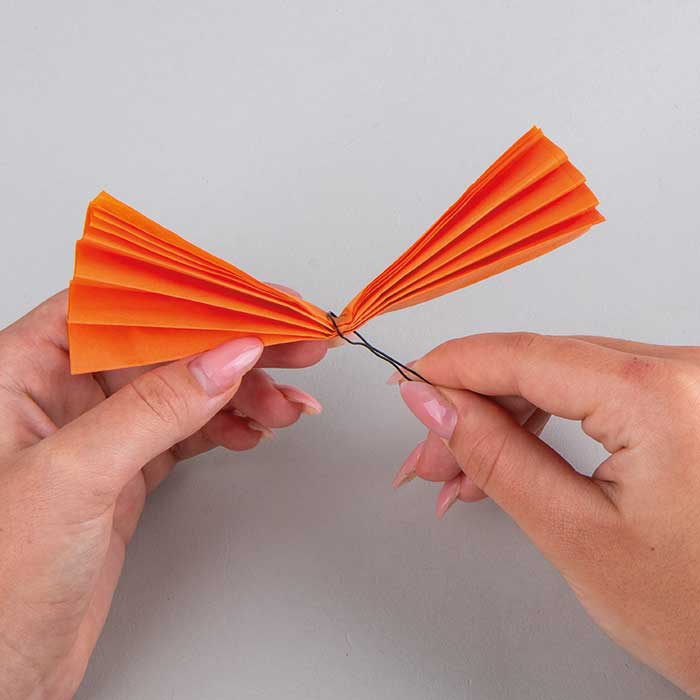 Zložene trakove papirja na sredini zaveži z žico za rože in nato prepogni.