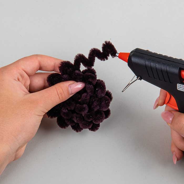 Za sredico sončnice oblikuj 3 rjave kosmate žičke v enakomerne zanke.