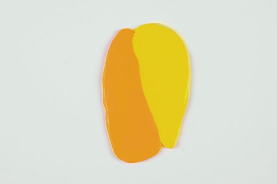 Plošči zdaj prepogni tako, da je rumena na rumeni in oranžna na oranžni strani. Nato ponovno razvaljaj z akrilnim valjčkom. Postopek ponavljaj (prepogibanje in valjanje), dokler ne dosežeš enotnega barvnega prehoda.