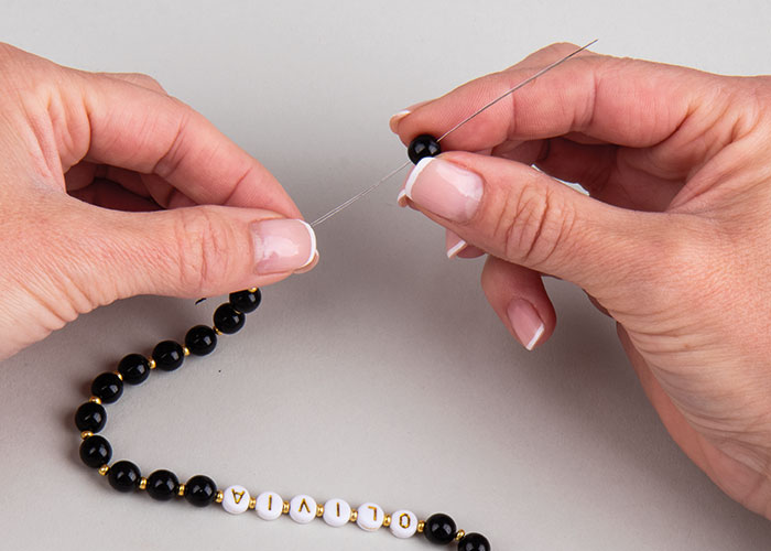 Nasvet: da bo ime na sredini in da bo verižica lepo sedla, je priporočljivo perle najprej razporediti, da določiš pravo število.