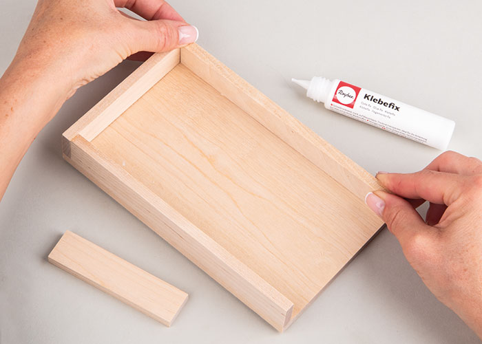 V naslednjem koraku s pomočjo Klebefix lepila sestavite pladenj iz lesenega seta. Pustite, da se vse dobro posuši.