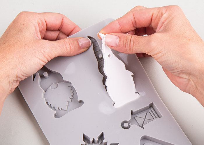 Po približno 1 uri ju previdno odstrani iz modela. Ulitke pusti, da se sušijo še en do dva dni. Če je potrebno, robove na zadnji strani zgladi z brusnim papirjem.