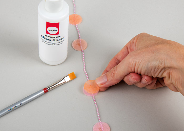 Prilepi konfete na vrvico, obojestransko, enega na drugega.