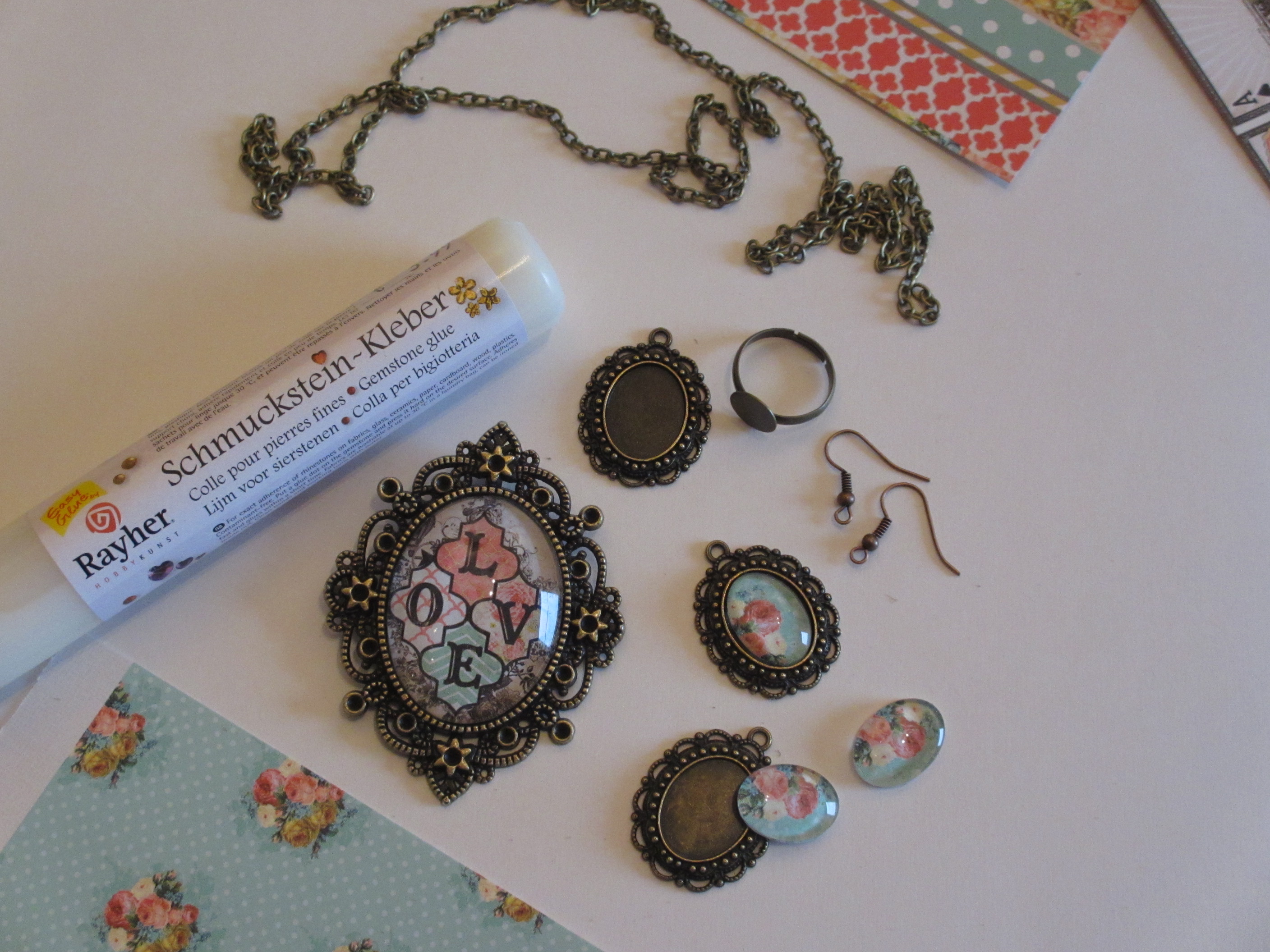 Medaljonček prilepimo na osnovo za prstan z močnim lepilom za nakit.