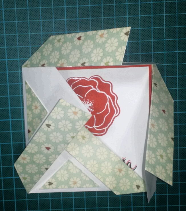 Vetrnico zložimo tako, da začnemo pri spodnjem zavihku in nadaljujemo v smeri urinega kazalca. Zaključimo tako, da četrti zavihek položimo preko tretjega in ga zataknemo pod prvega.