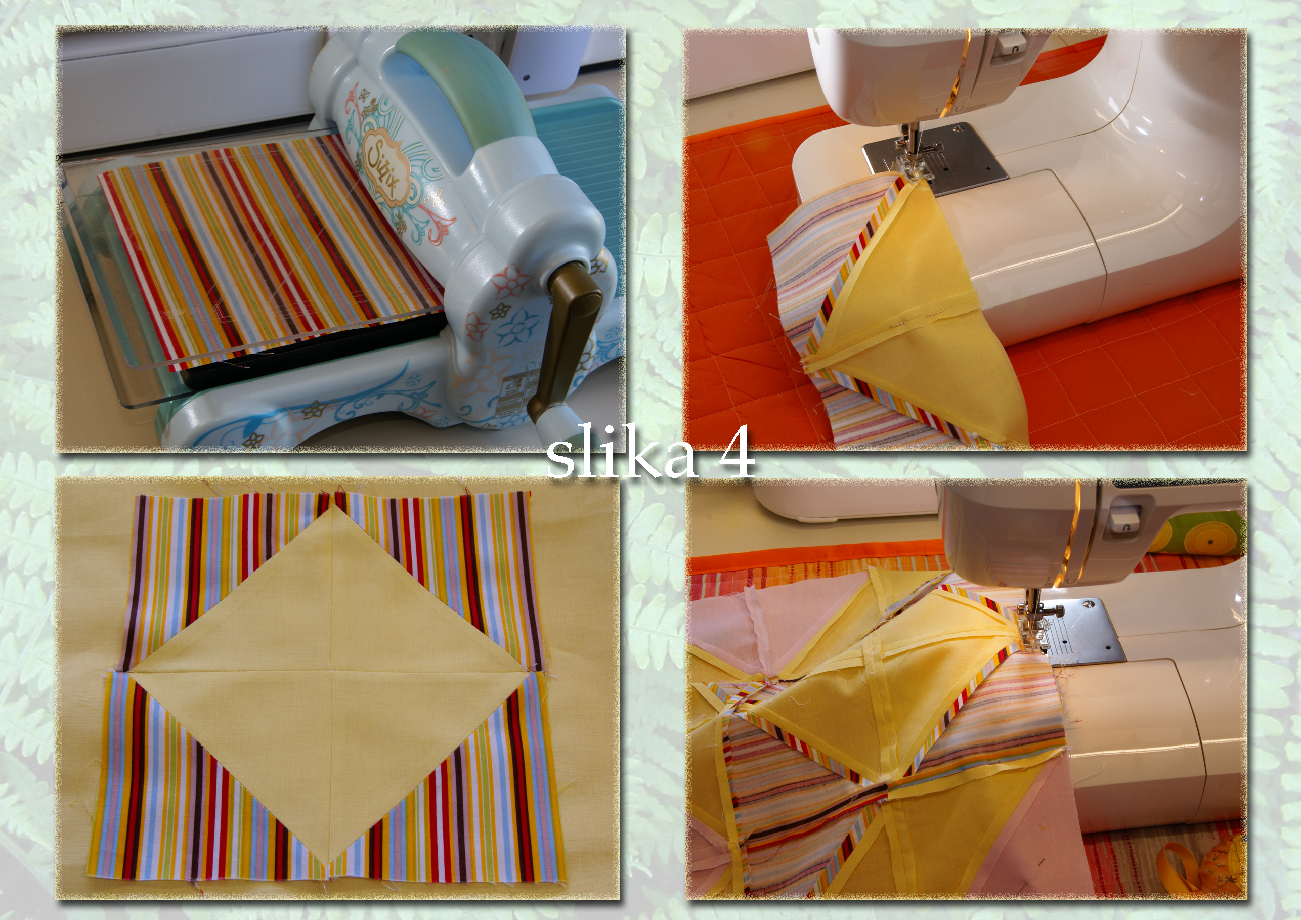 Trikotnike izrežemo s pomočjo Sizzix Bigz šablone in jih sešijemo po shemi.