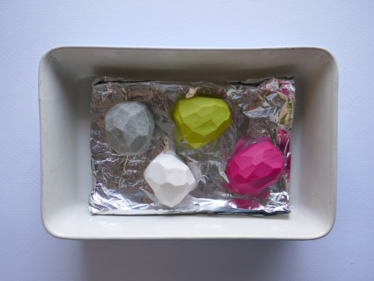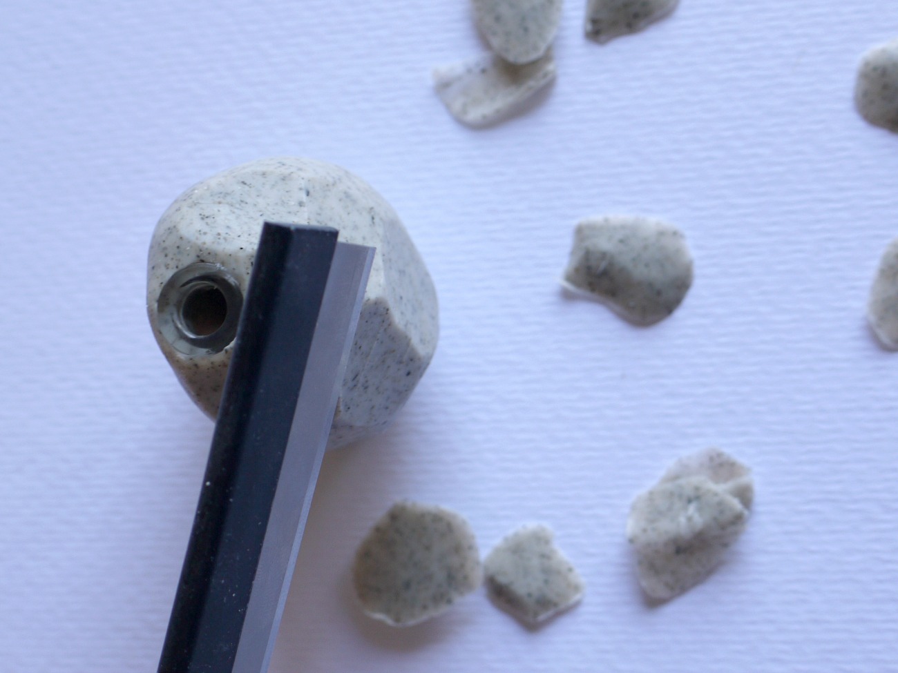 Z rezilom režemo majhne dele polimerne mase in tako oblikujemo geometrijsko obliko z majhnimi ravnimi ploskvami.